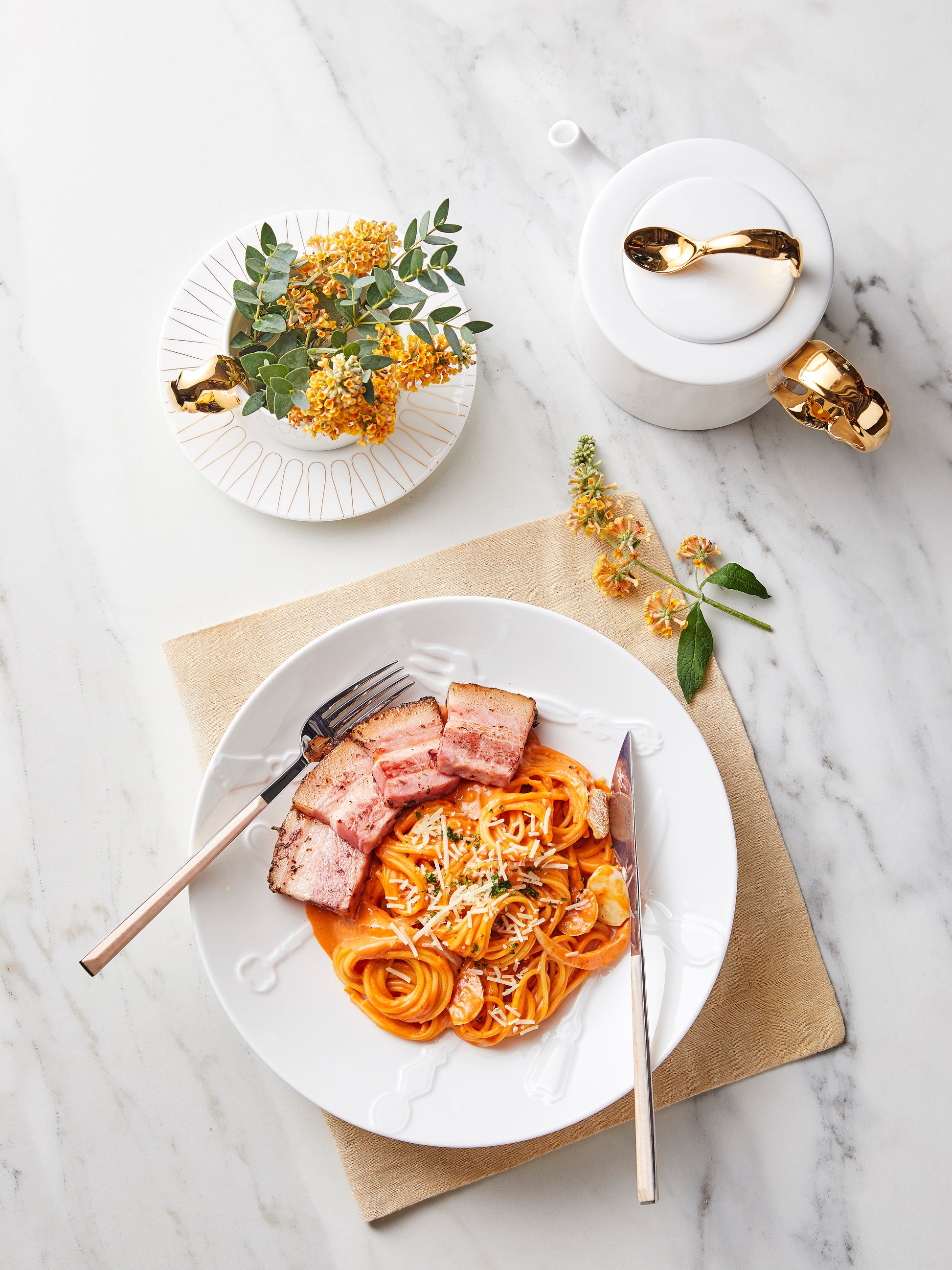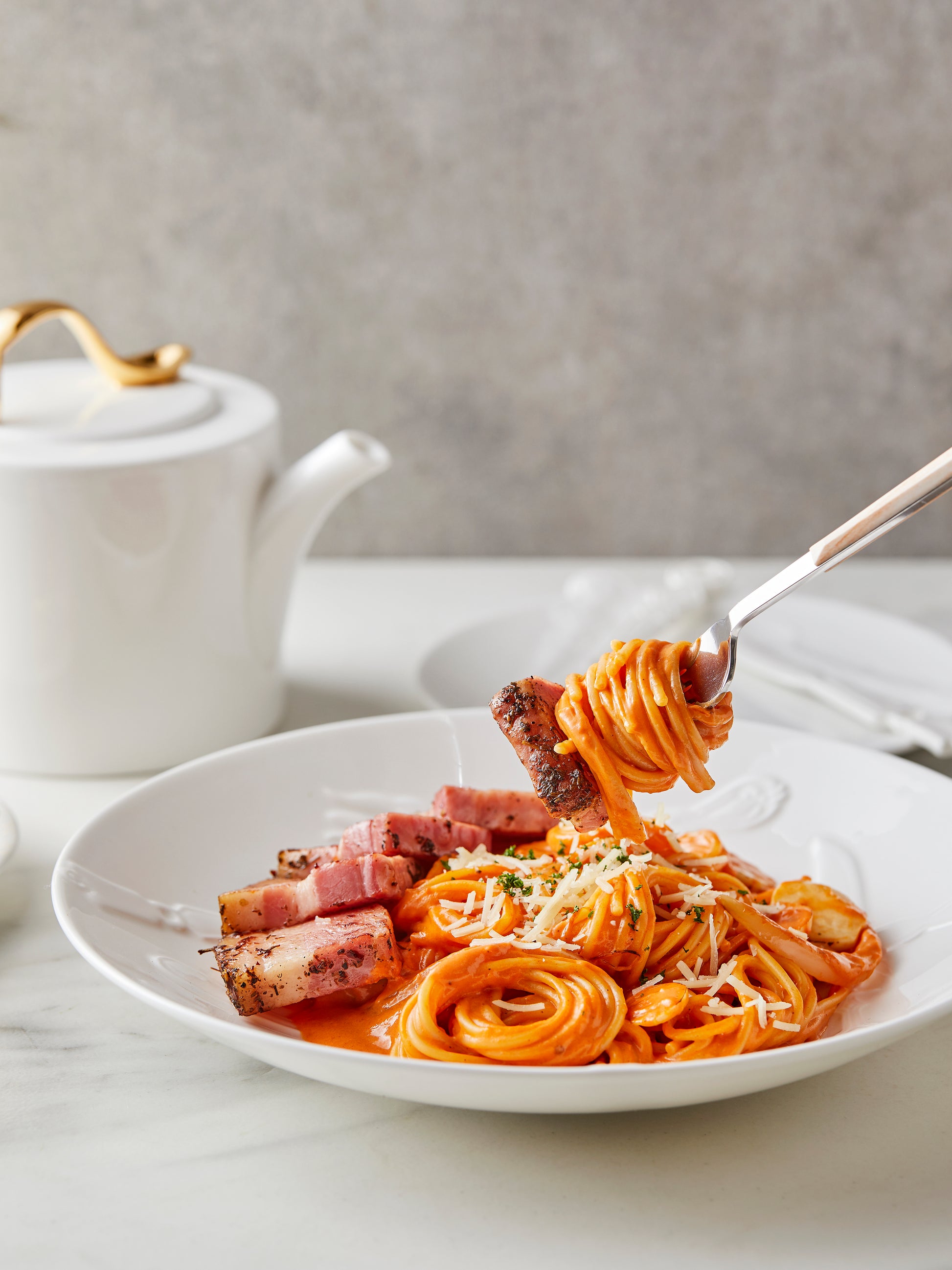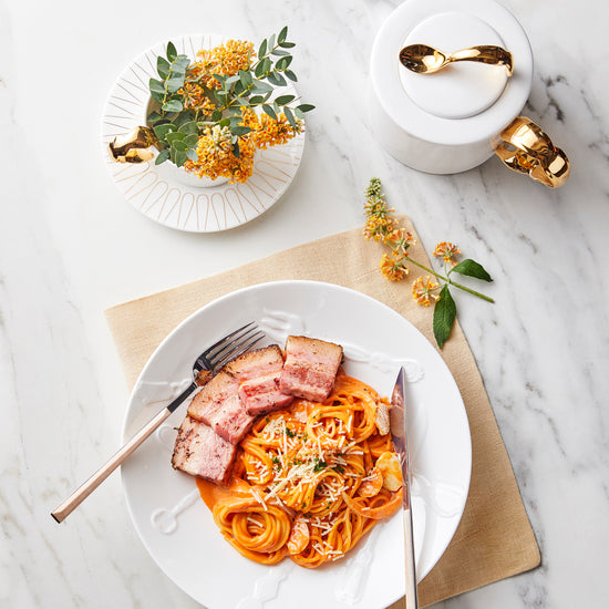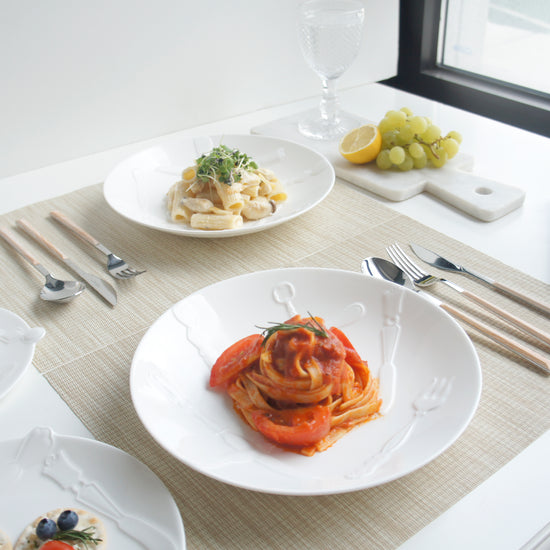 - Fine Bone China w/ Embossed Design