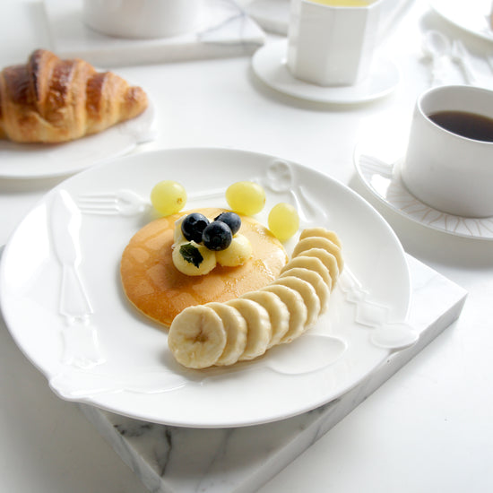 - Fine Bone China w/ Embossed Design