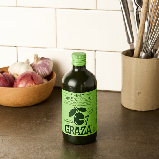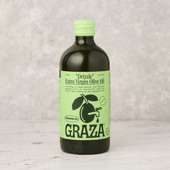 Like a sprinkle of flaky salt or the squeeze of a good condiment, Drizzle adds a big pop of flavor right before you dig in. (That’s why it’s called a finishing oil!) Drizzle’s flavors are sensitive, though, so keep it off the heat.