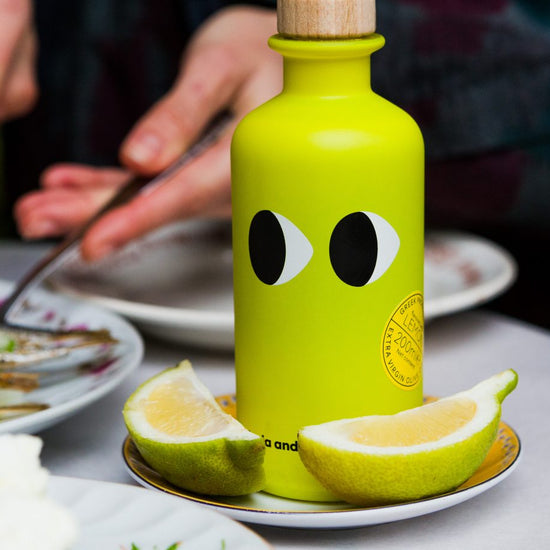 Greek extra virgin olive oil from cold-pressed olives infused with natural lemon.