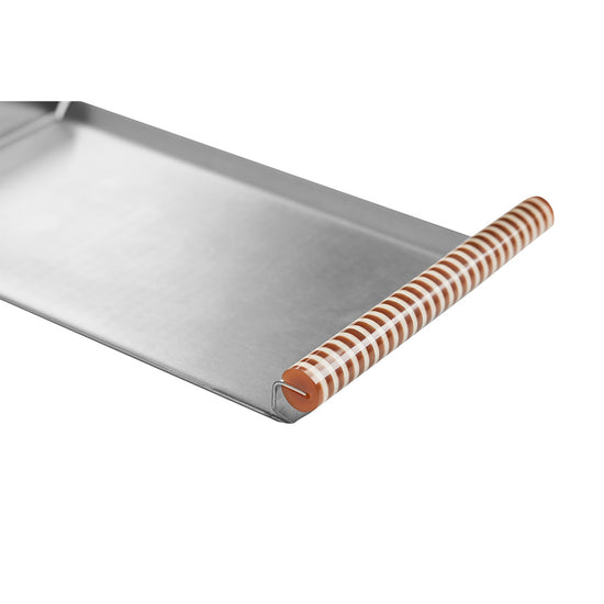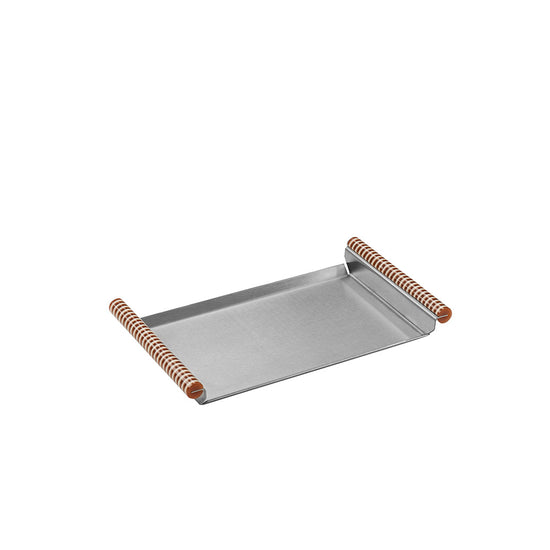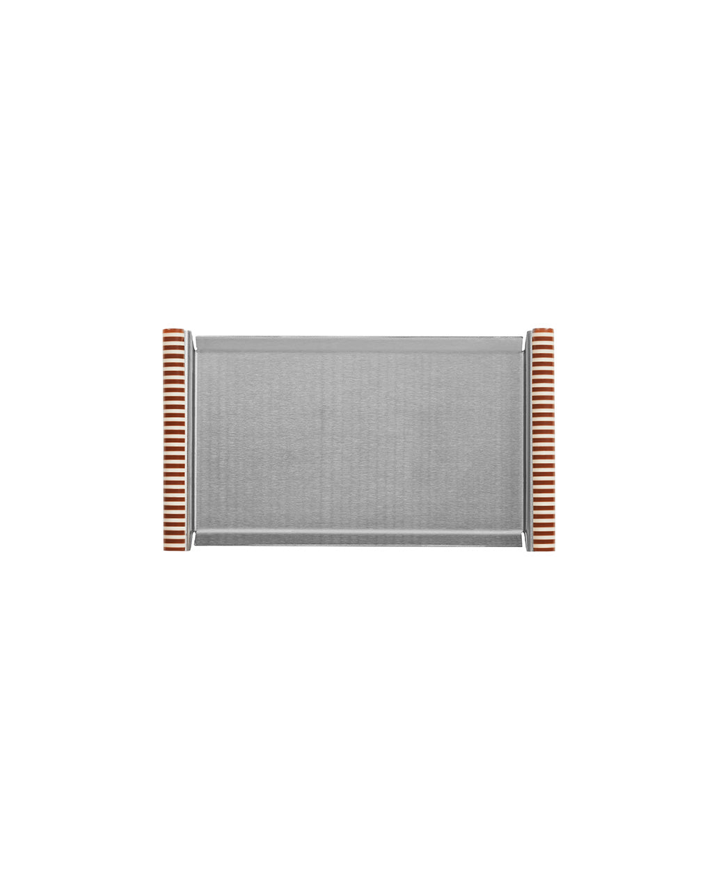 Rectangular brushed stainless steel tray with striped acrylic sides.A decorative and collectible piece – ideal for organizing small objects or adding a graphic touch to any space.